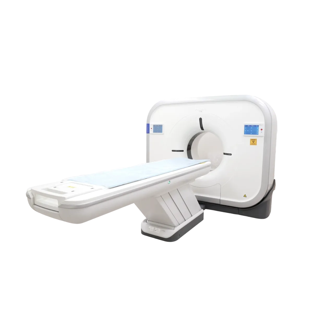 PHILIPS ileri seviye bilgisayarlı tomografi (CT) görüntüleme sistemi platformudur. Bu cihaz, tıbbi görüntülemede yüksek kaliteli kesitsel görüntüler üretmek için X-ray teknolojisi ve bilgisayar tabanlı yeniden yapılandırma tekniklerini bir araya getirir. CT, vücut içi anatomiyi çok ince plakalar halinde kesitsel görüntülerle gösterir ve hastalıkların teşhisinde temel bir araçtır.